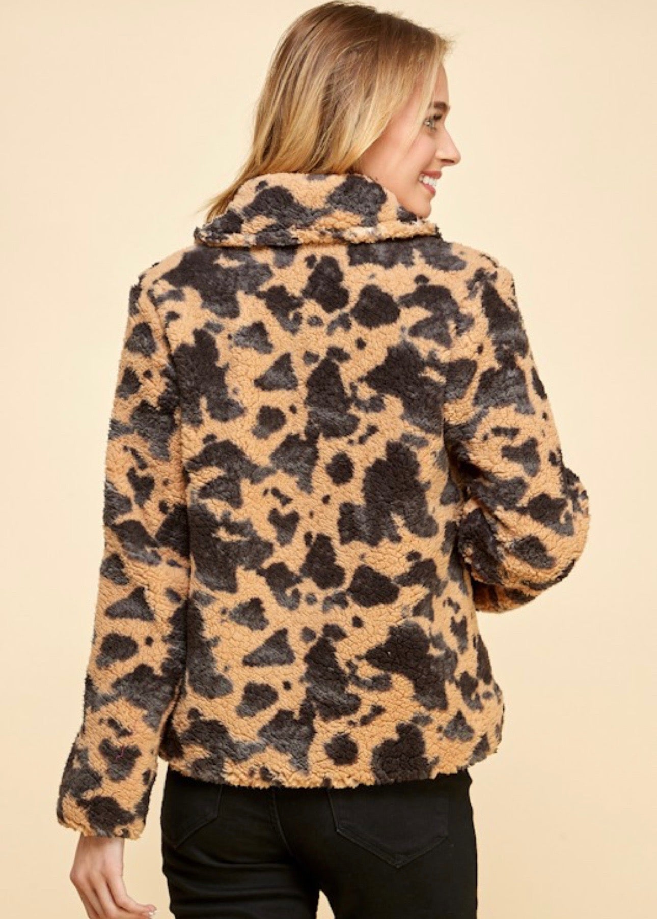 Stay cozy and on-trend with this fluffy animal print jacket. Its soft texture and eye-catching pattern make it a standout layer for chilly days!